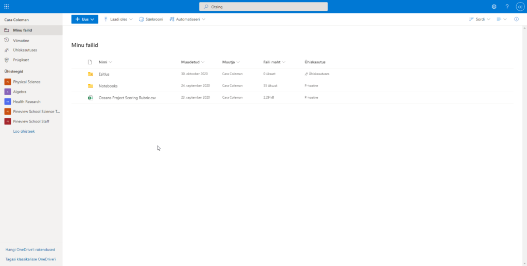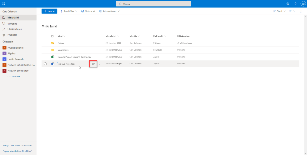 Sel viisil saate faile ja kaustu hõlpsasti jagada, võimaldades koostööd nii õpetajate, juhendajate kui ka klassikaaslastega, et töö sujuks sujuvalt ja tõhusalt.