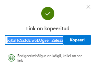 1. Avaneb jagamise sätete aken, kust leiate Kopeeri link valiku. See võimaldab teil kopeerida lingi, mida saate jagada soovitud platvormidel, näiteks e-koolis või Stuudiumis.