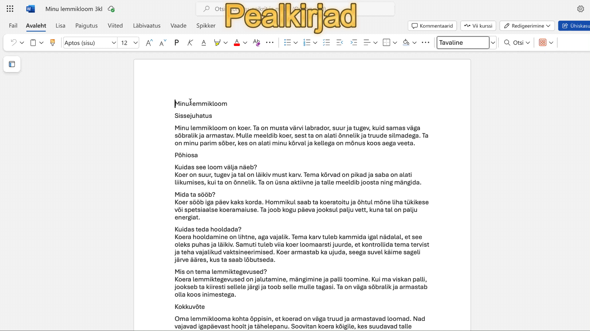 📎 Salvesta oma jutt OneDrive’i kausta “Arvutiõpetus”.
