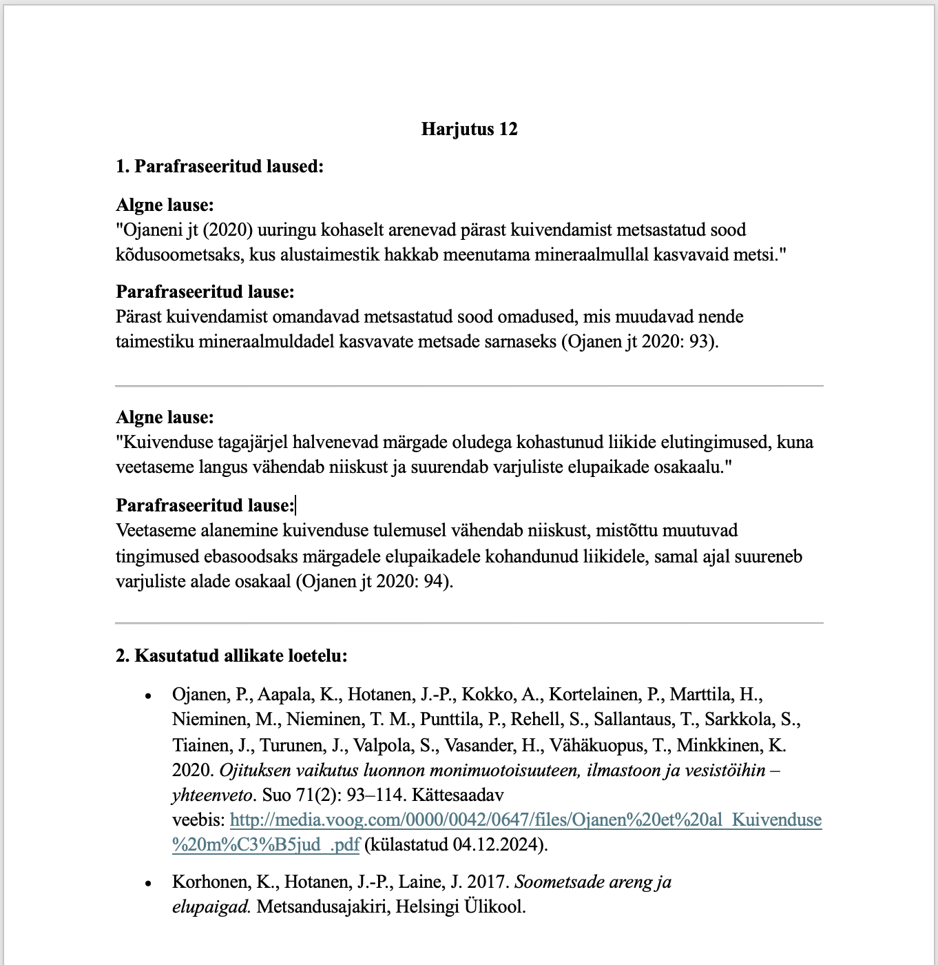 Eesmärk: Õppida analüüsima ja korrektselt viitama olemasolevat teksti.